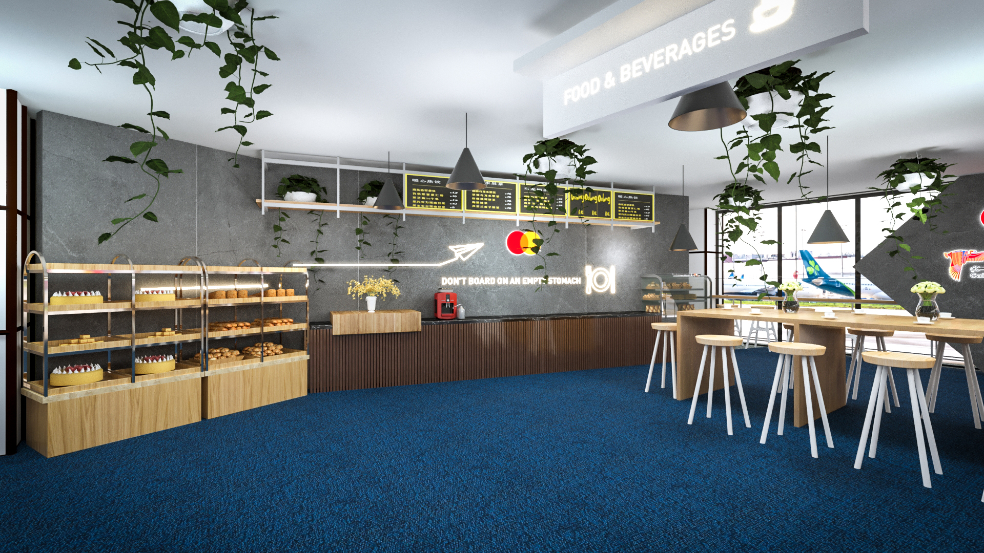 I was in charge of pitching the design, 2D artwork and signage, and helped with the 3D visualization.