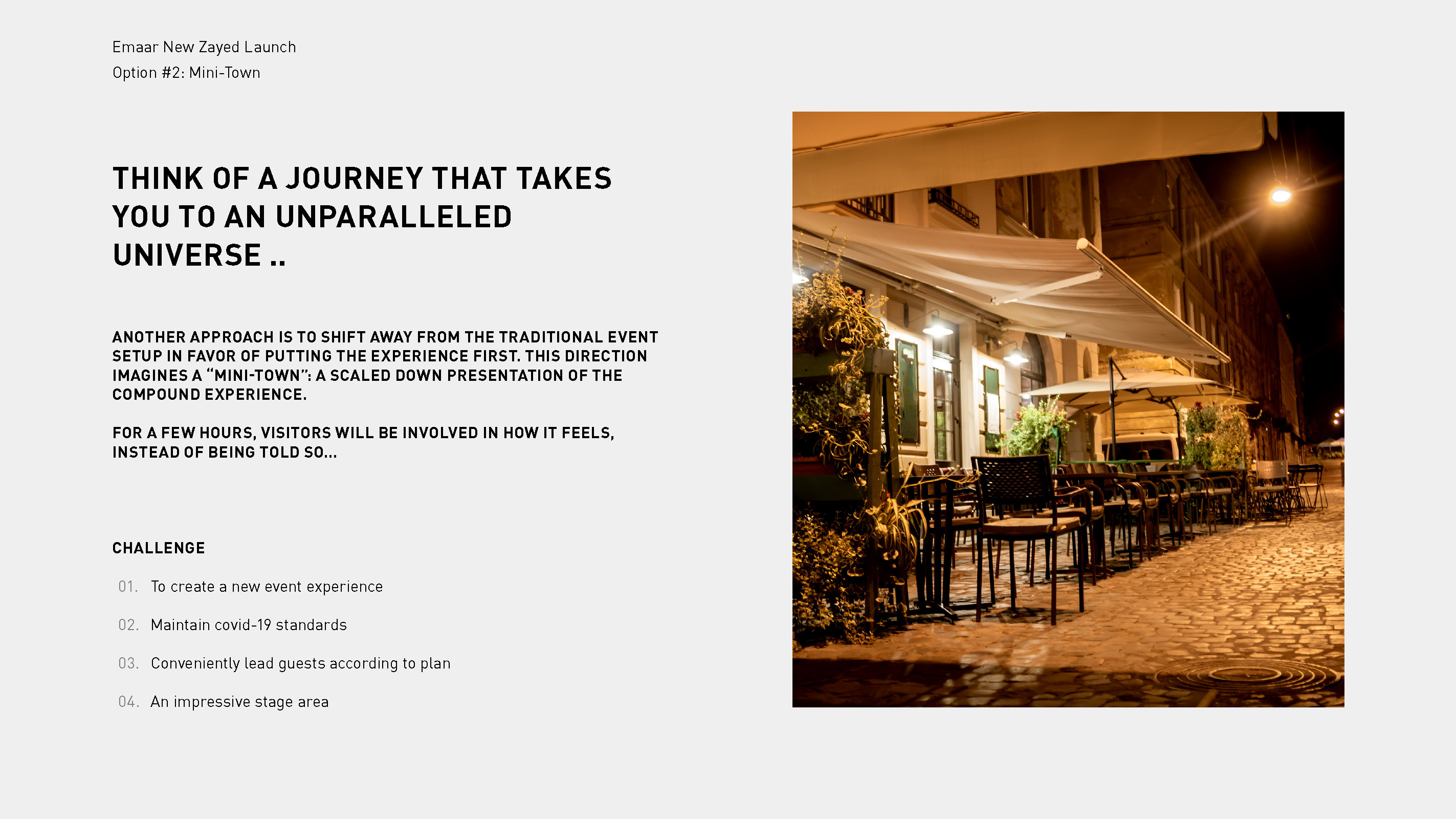 Why don't we create a little experience for the visitors? Each will browse in several paths resembling cobble street watching light entertainment and "getting into the mood"?
