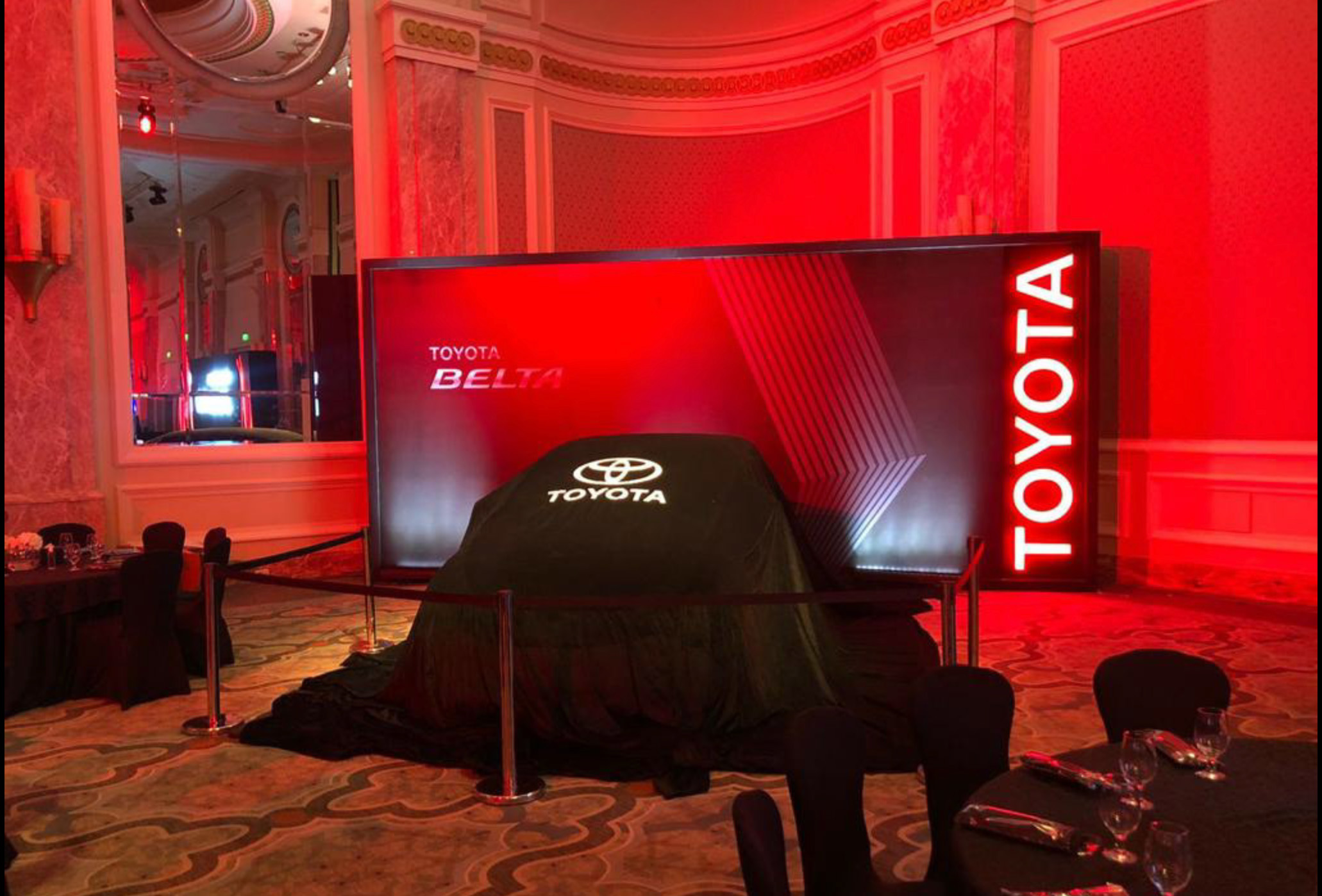 Despite the tight deadline, we mixed 2d elements and stripes with the lights and location in venue. This gave the car itself -when shown- extreme visibilty. Anfd the whole event had its distinct "taste" that is different than budget cars.