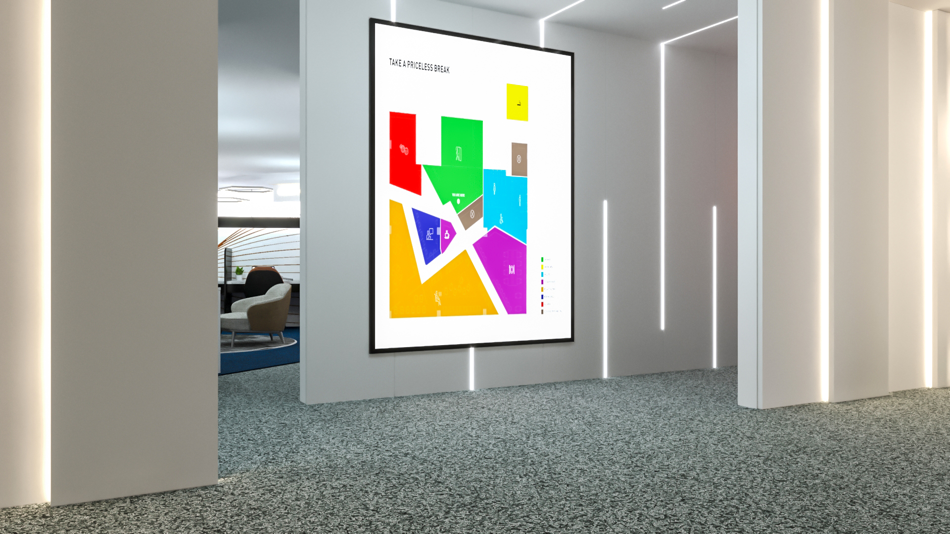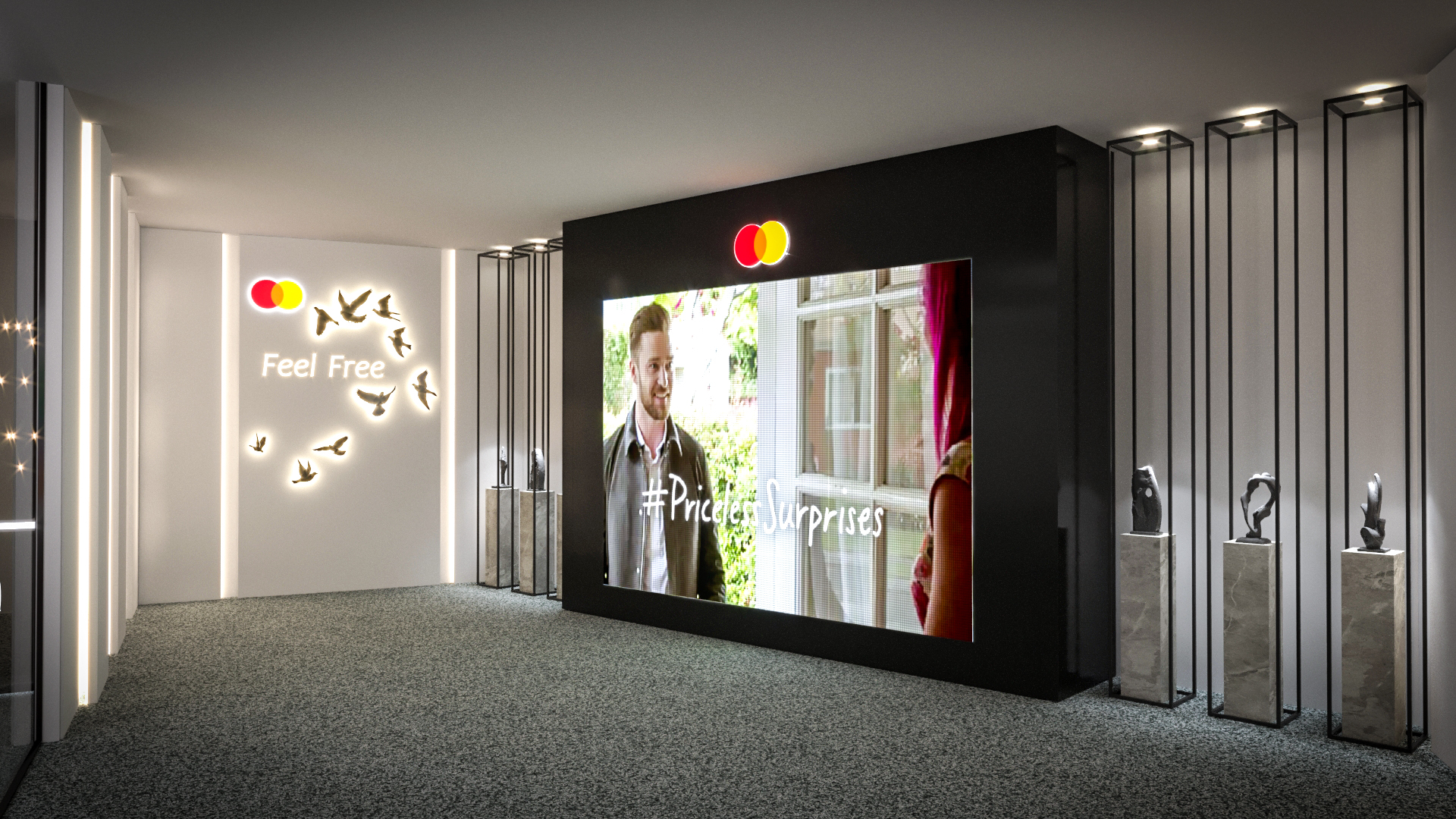 I was in charge of pitching the design, 2D artwork and signage, and helped with the 3D visualization.